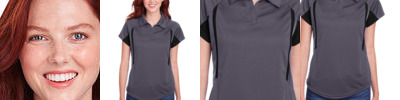 100% polyester inserts; 100% polyester textured stripe; 100% polyester Dry-Excel™; horizontal, textured stripe with high mechanical stretch; snag resistant technology; raglan sleeves for maximum mobility; self-fabric collar; three button placket;