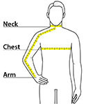| Arm | 30 - 30 3/4 | 30 3/4 - 31 1/2 | 31 1/2 - 32 | 32 - 32 1/2 | 32 1/2 - 33 | 33 - 33 3/8 | 33 3/8 - 33 3/4 | 33 3/4 - 34 1/2 |